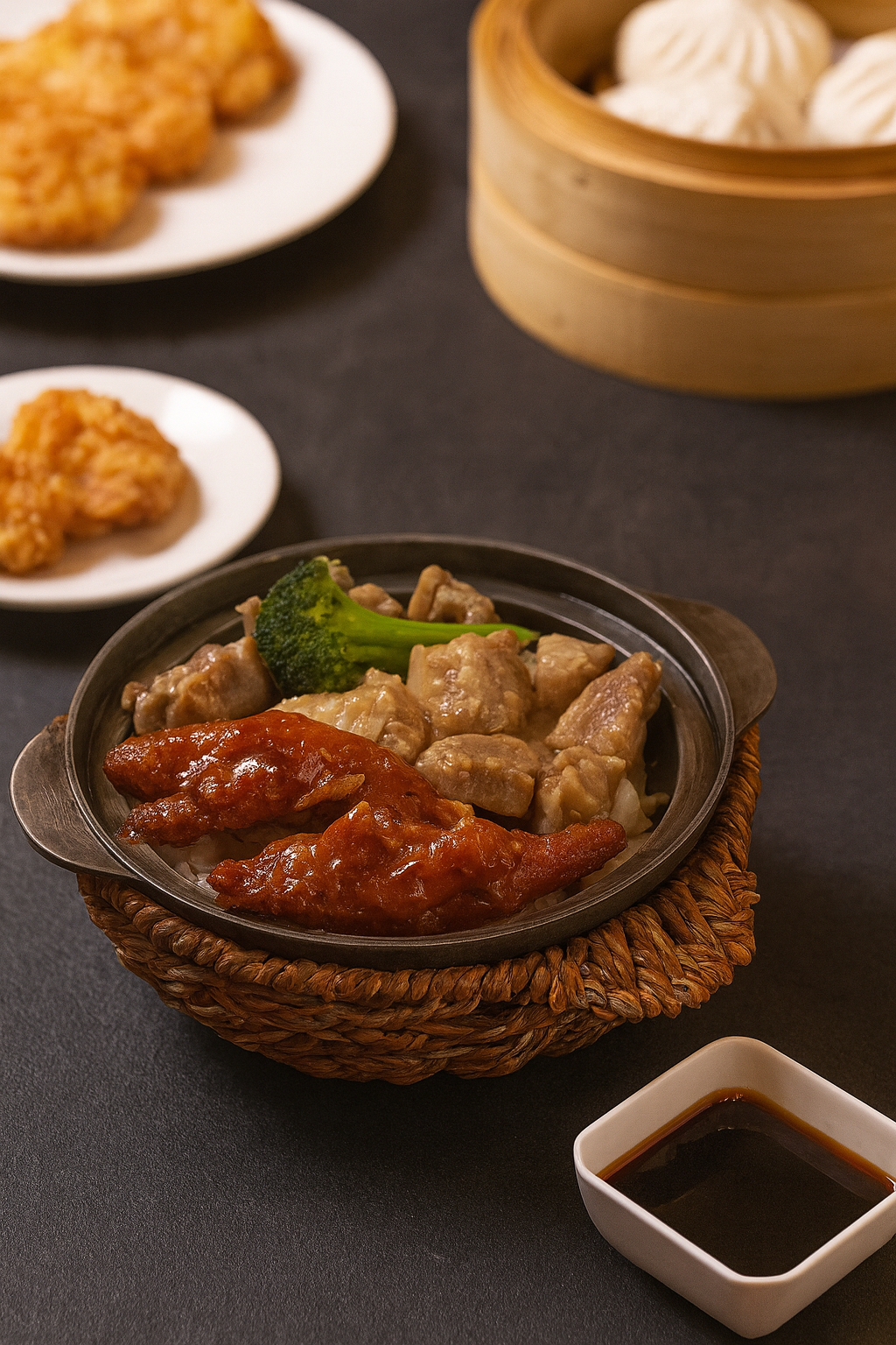 Our BBQ Combination brings together two signature Cantonese roasted meats on one plate, offering a rich contrast of textures and flavors. Each selection is prepared using traditional roasting techniques that create glossy, caramelized skins and tender, juicy interiors. Whether paired with char siu, roasted duck, crispy pork, or other classics, this combination highlights the depth, aroma, and craftsmanship of Hong Kong–style barbecue in a single, satisfying dish.